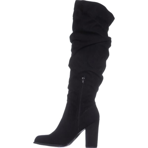 Knee-High Slouch Boots, Black Fabric black fabric knee high boots