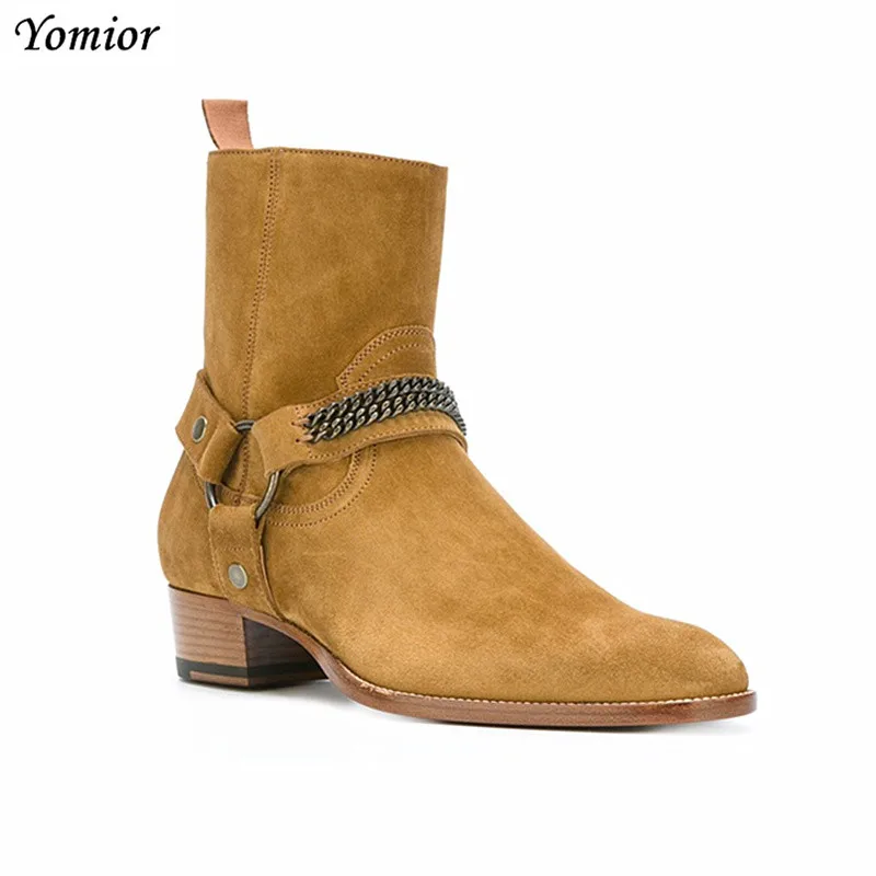 Male Real Cow Leather Ankle Boots trendy chelsea boots