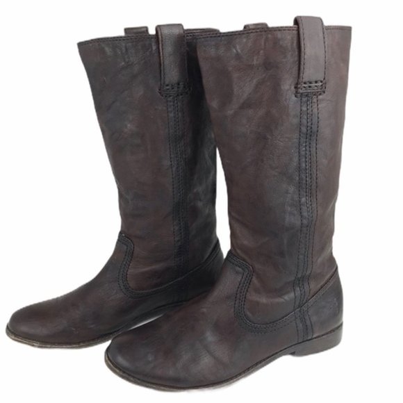 Anna Mid Pull On Brown Leather Boot Sz frye anna mid pull on