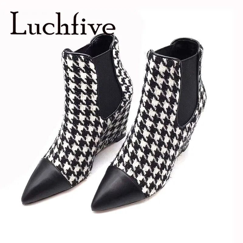 houndstooth tweed ankle boots