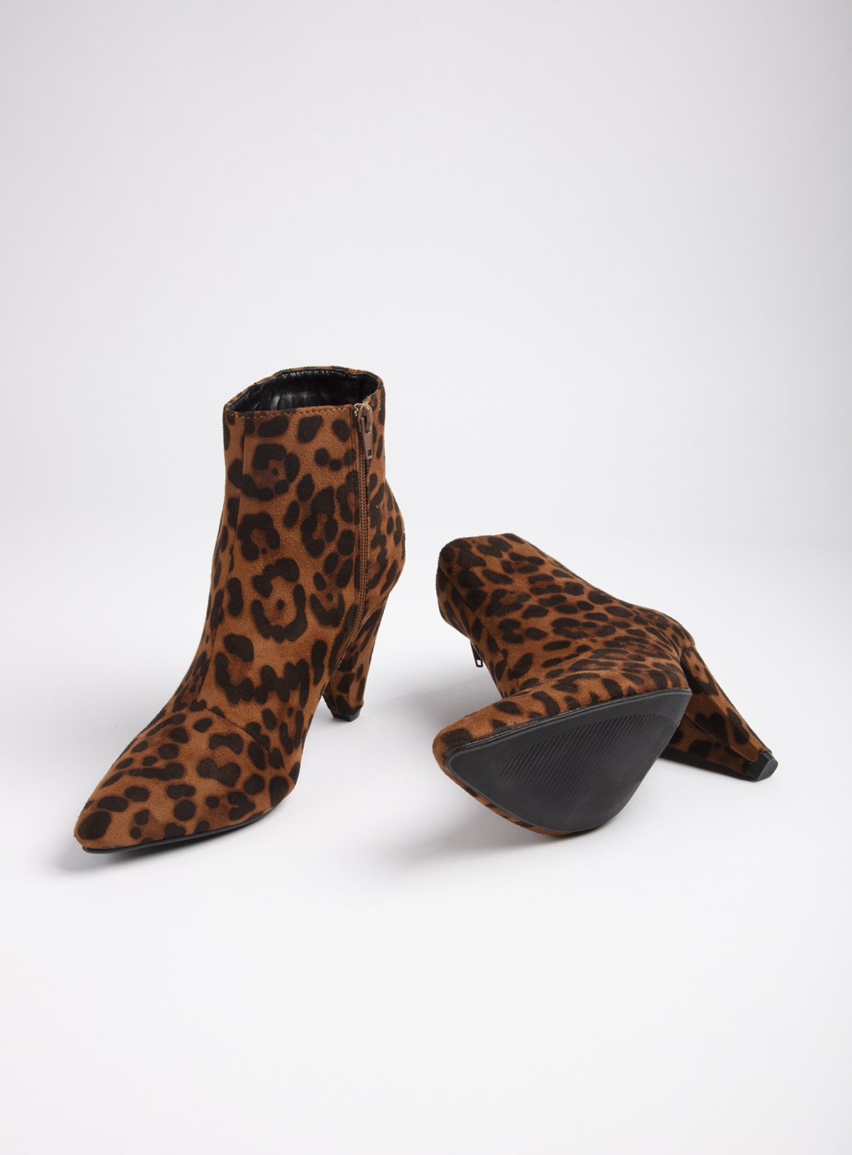 Leopard Print Faux Suede Chunky Studded  animal print chelsea boots