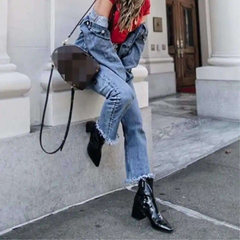 Hot Selling Leather Thick Heels Ankle pointed toe ankle boots outfit
