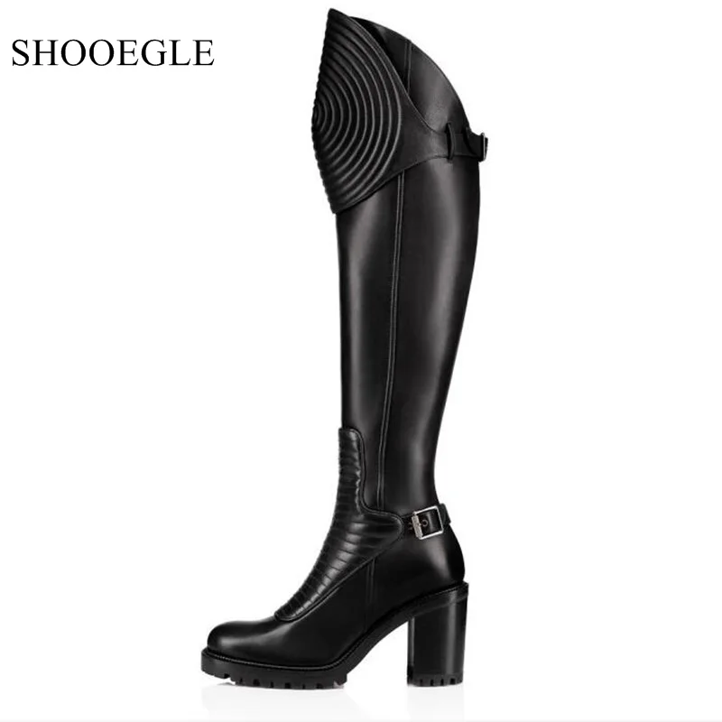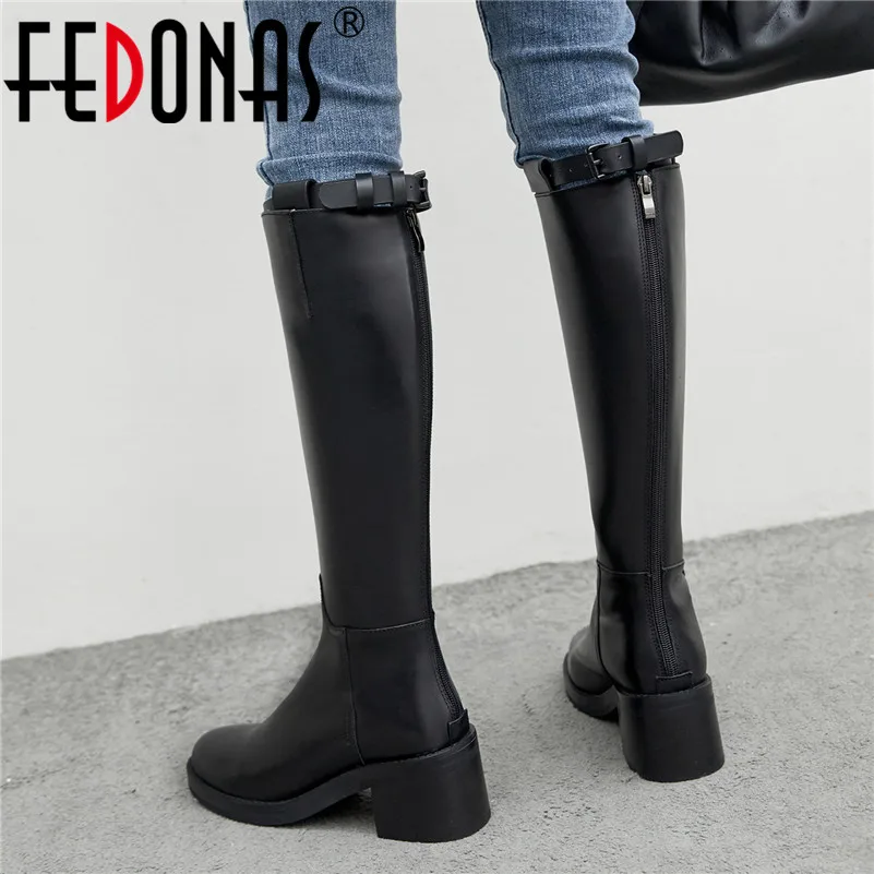 Ladies Classic Square Heel Leather Long classic knee high boots