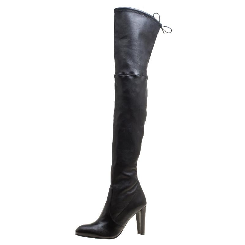 Black Leather Highland Thigh High Boots stuart weitzman leather knee high boots