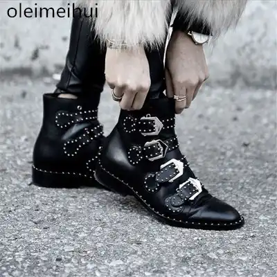 rivets women boots leather shoes autumn best designer winter boots