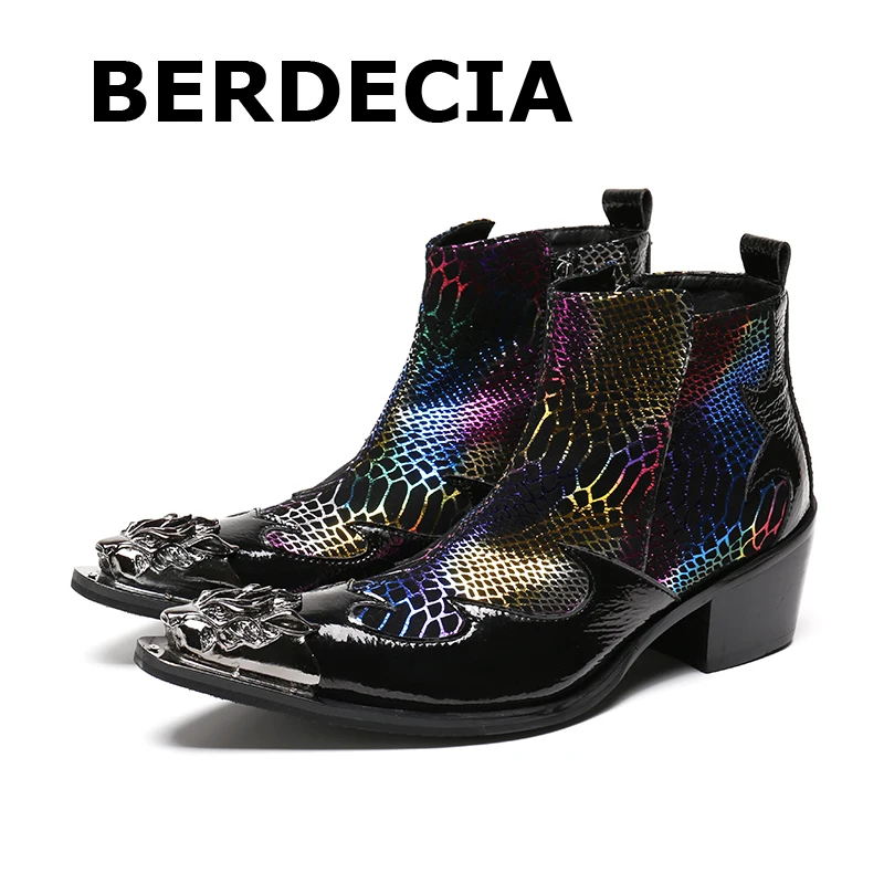 LTTL 2017 Mens High Heel Boots Steel snakeskin steel toe boots